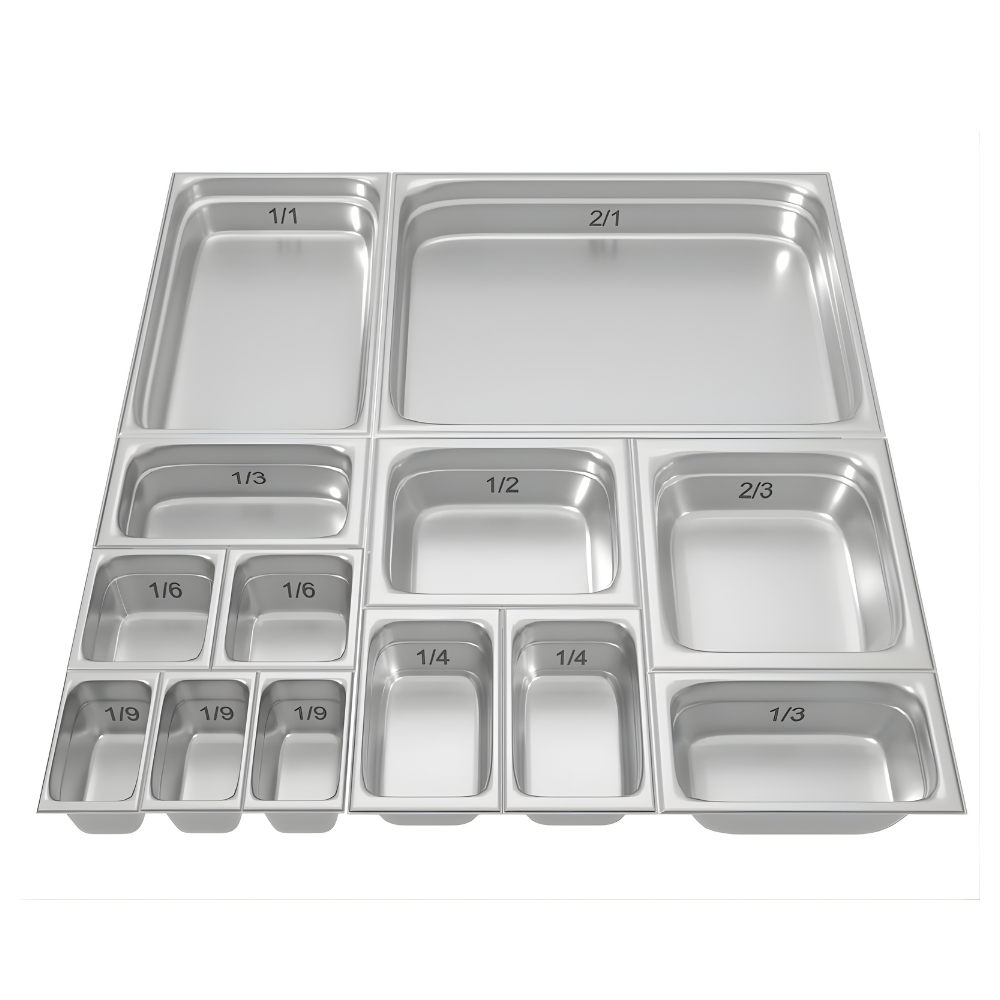 Mehrere GN-Behälter in unterschiedlicher Größe vorhanden.